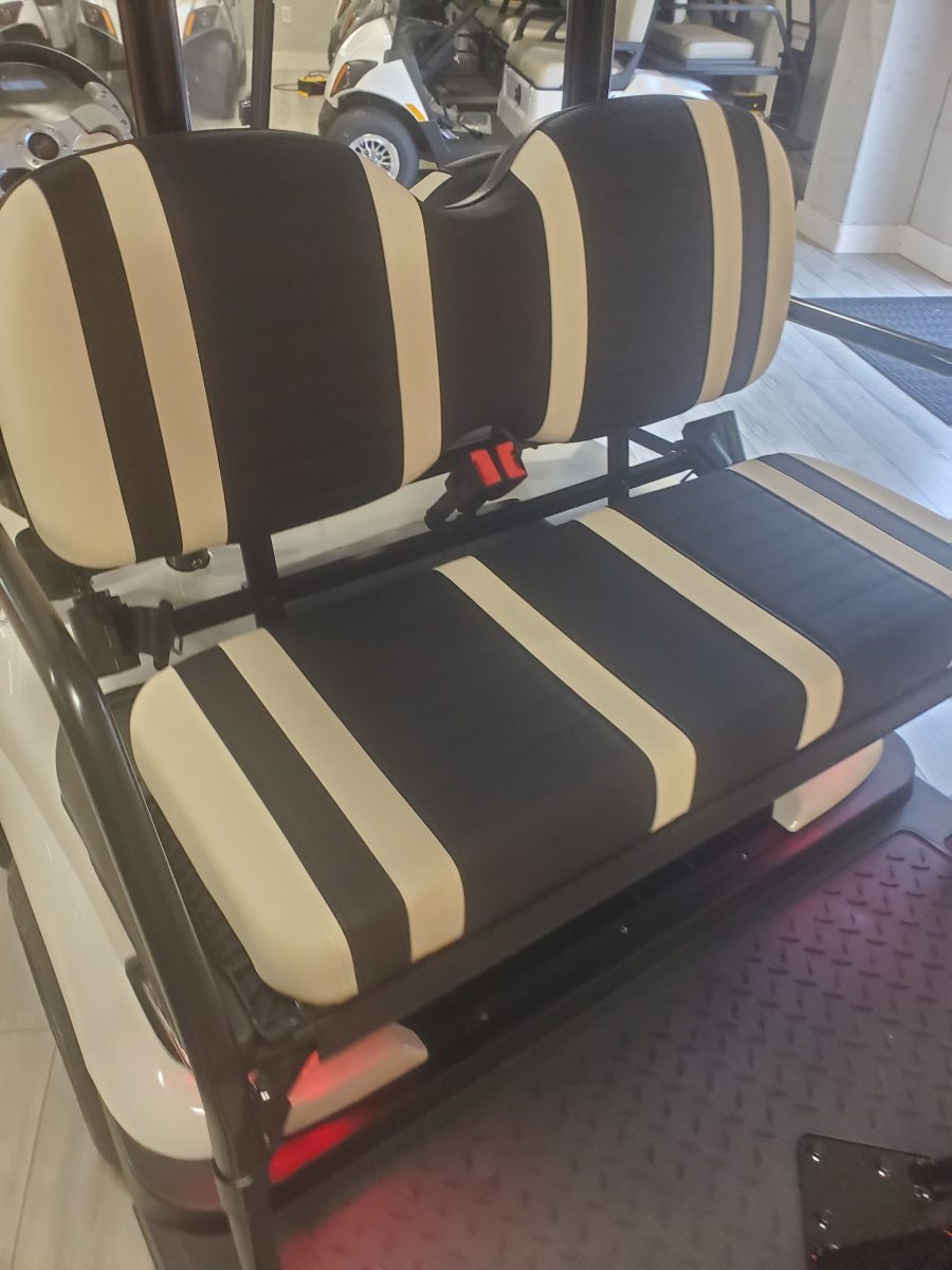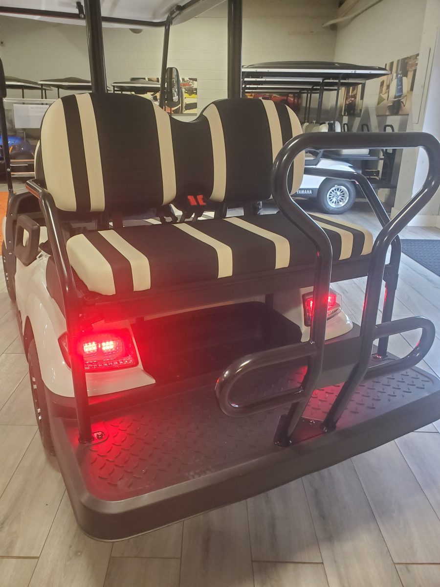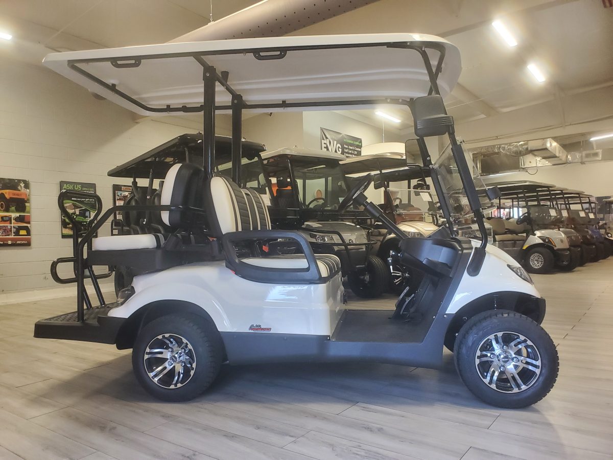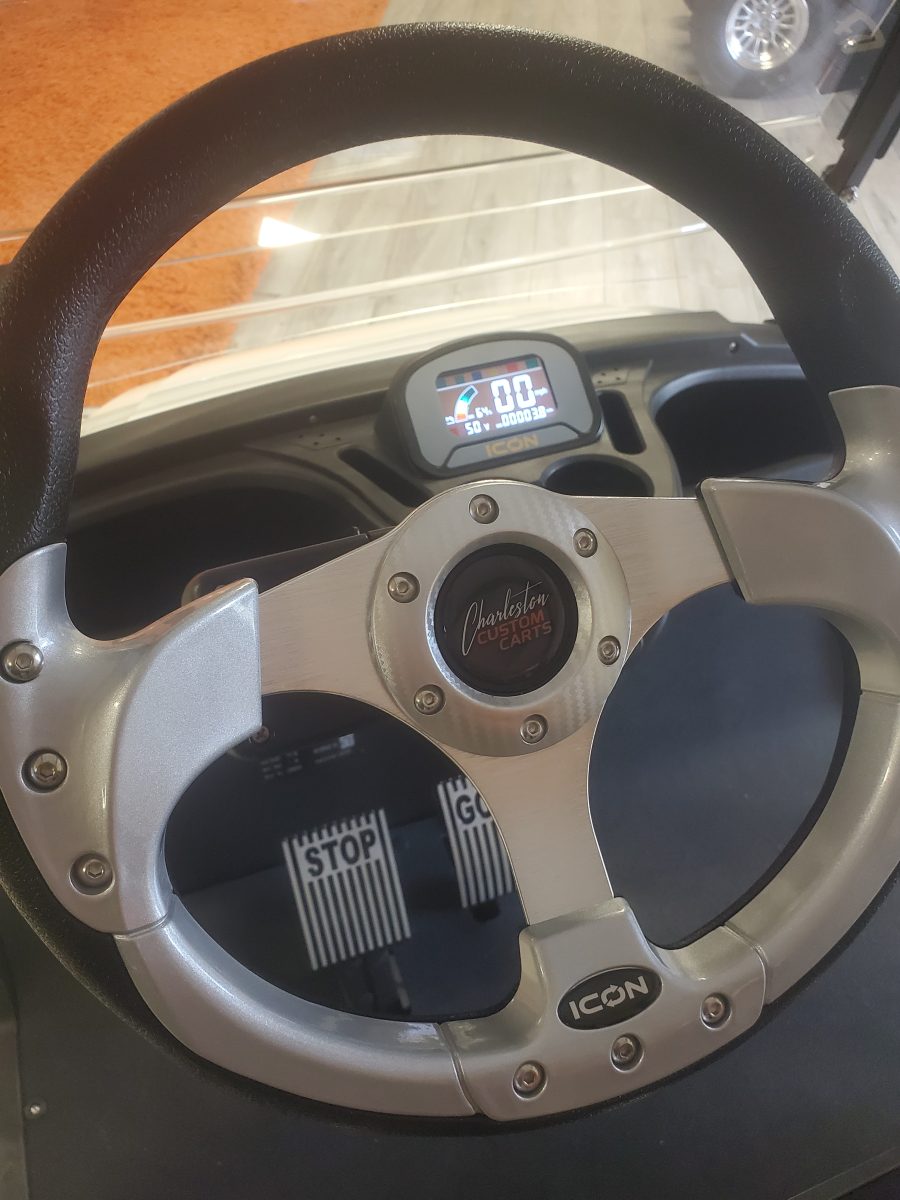 The ICON i40 four-seater golf cart/ Low Speed Vehicle is the epitome of perfection when it comes to residential and commercial needs. Whether you’re taking your friends to lunch or transporting potential clients’, this golf cart/ Low Speed Vehicle is stylish and extremely comfortable. Plus, it’s loaded with premium features like 10″ aluminum wheels, 4-wheel disc brakes, powder-coated steel chassis, lights, turn signals, high-speed rear ends, durable front and rear bumpers, painted rooftops, horns, digital gauges, and more!