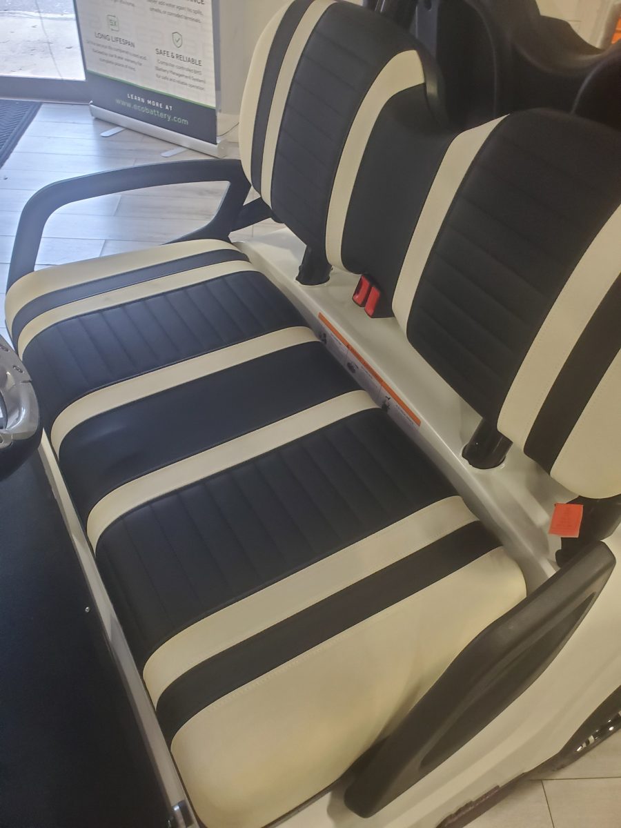 Marine Grade Vinyl, Custom Stitched Panel, Single Color, Color Matched with White or Black Accents. Fold Flat Rear Seat for Hauling