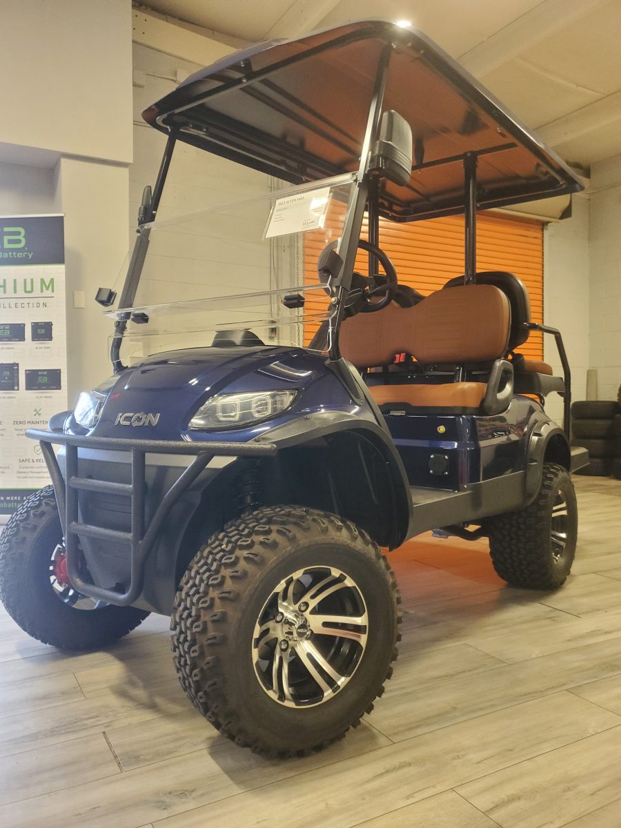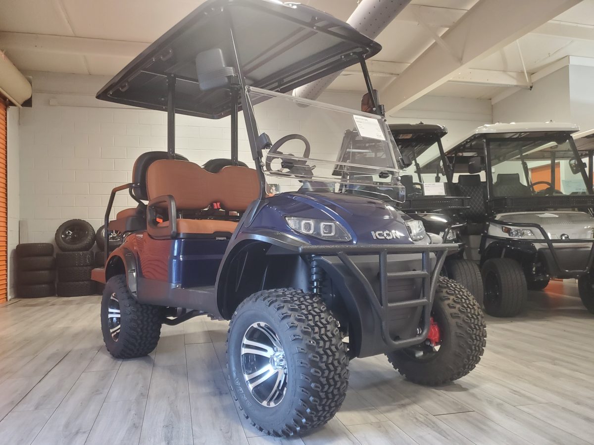 This lifted ICON i40L four-seater golf cart stands out with style, durability and power, making it an all around winner for commercial & residential use.