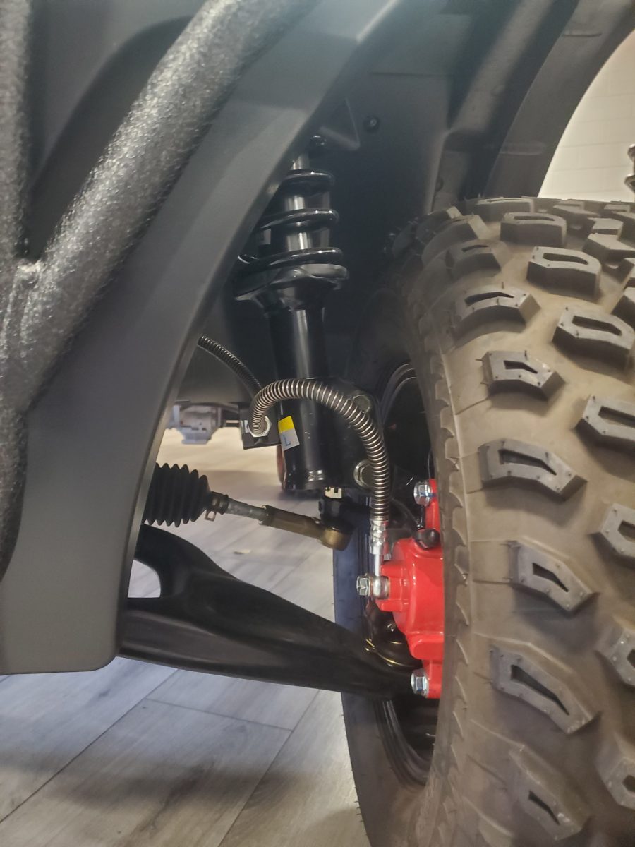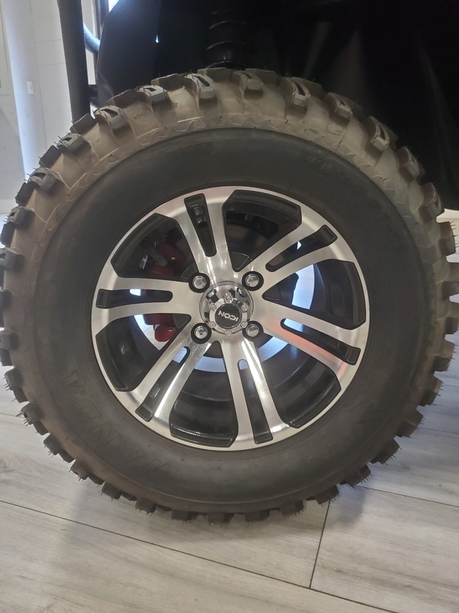 The ICON EV i40L is ideal for individuals and companies looking to transport friends, family, and clients in comfort & class. This lifted four-seater model is loaded with premium features like 12″ aluminum wheels, 4-wheel disc brakes, powder-coated steel chassis, lights, turn signals, high-speed rear ends, heavy-duty forward brush guard, durable front and rear bumpers, fender flairs, painted rooftops, horns, digital gauges, and more.