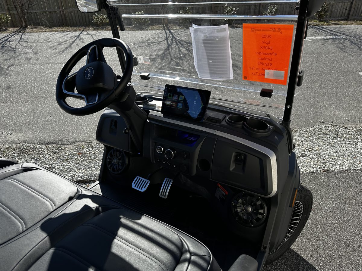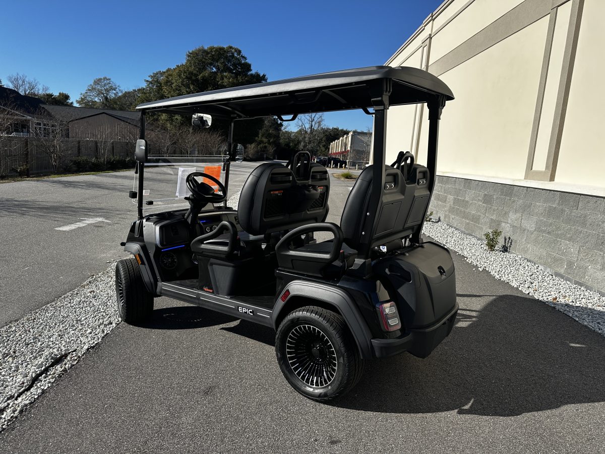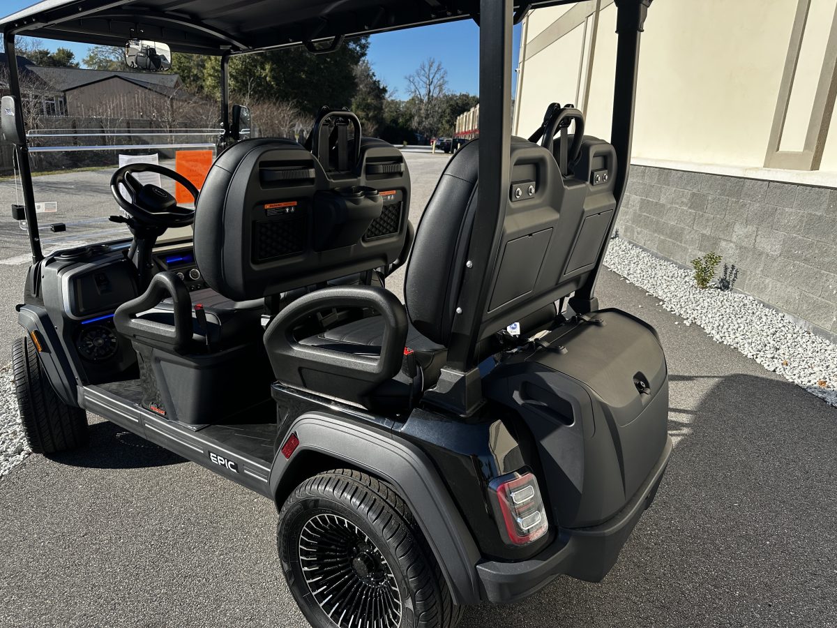 The brand new EPIC E40FX is the best golf cart on the market today! Furnished with every imaginable feature, the forward-facing four-seater EPIC E40FX comes in six stylish colors and three height options. Premium 14” wheels and street-ready tires provide a solid foundation for every journey on every terrain, no matter what lift height is selected. With an abundance of storage, superior built-in marine-grade sound system and speakers, and stunning accent lighting, this EPIC golf cart illuminates the possibilities for fun and adventure.