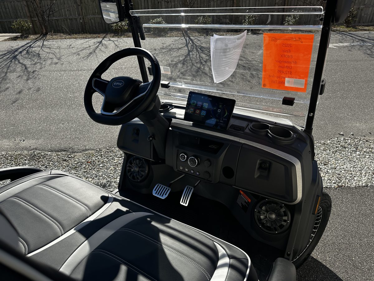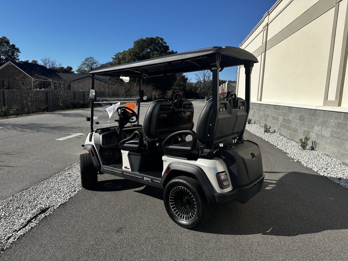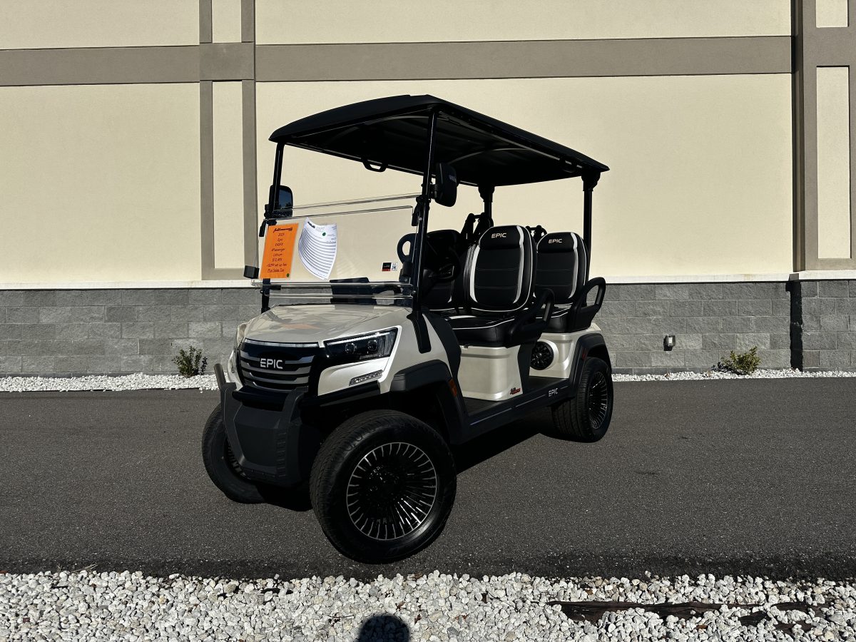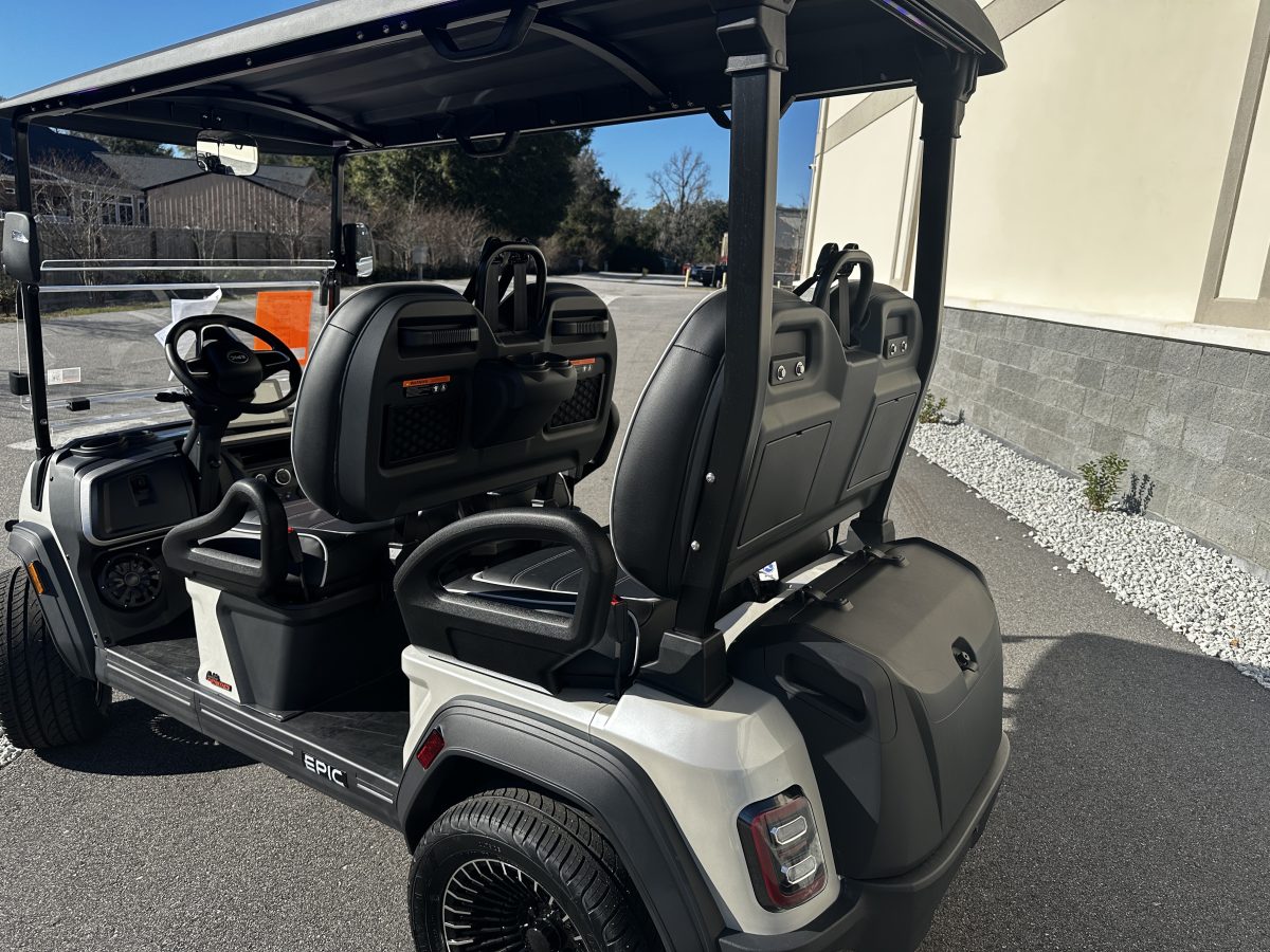 The brand new EPIC E40FX is the best golf cart on the market today! Furnished with every imaginable feature, the forward-facing four-seater EPIC E40FX comes in six stylish colors and three height options. Premium 14” wheels and street-ready tires provide a solid foundation for every journey on every terrain, no matter what lift height is selected. With an abundance of storage, superior built-in marine-grade sound system and speakers, and stunning accent lighting, this EPIC golf cart illuminates the possibilities for fun and adventure.